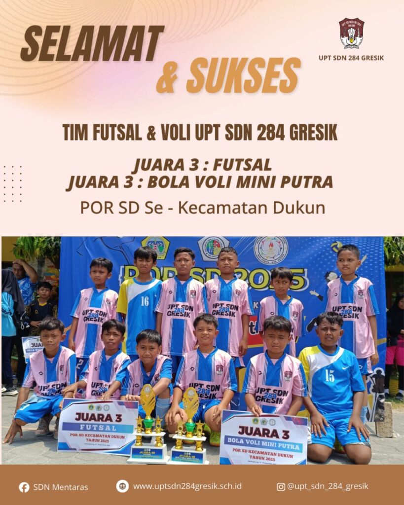 Alhamdulillah, siswa-siswi UPT SD Negeri 284 Gresik kembali menorehkan prestasi gemilang dalam ajang Pekan Olahraga (POR) SD 2025 Se-Kecamatan Dukun yang dilaksanakan tanggal 18 September 2025 di Desa Sambogunung. Dengan penuh semangat sportivitas dan kerja sama tim, sekolah kita berhasil meraih beberapa juara sekaligus. Adapun prestasi yang berhasil diraih, yaitu: Juara 2 Tenis Meja Putra […]